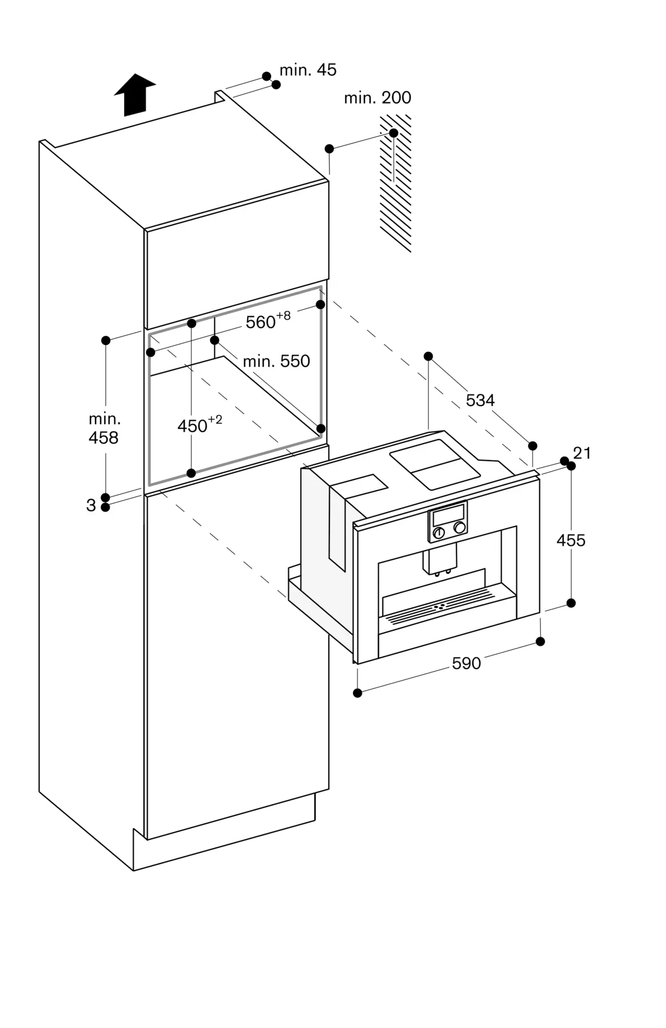 家電前面與櫥櫃前端的側面間距,至少須有5 mm