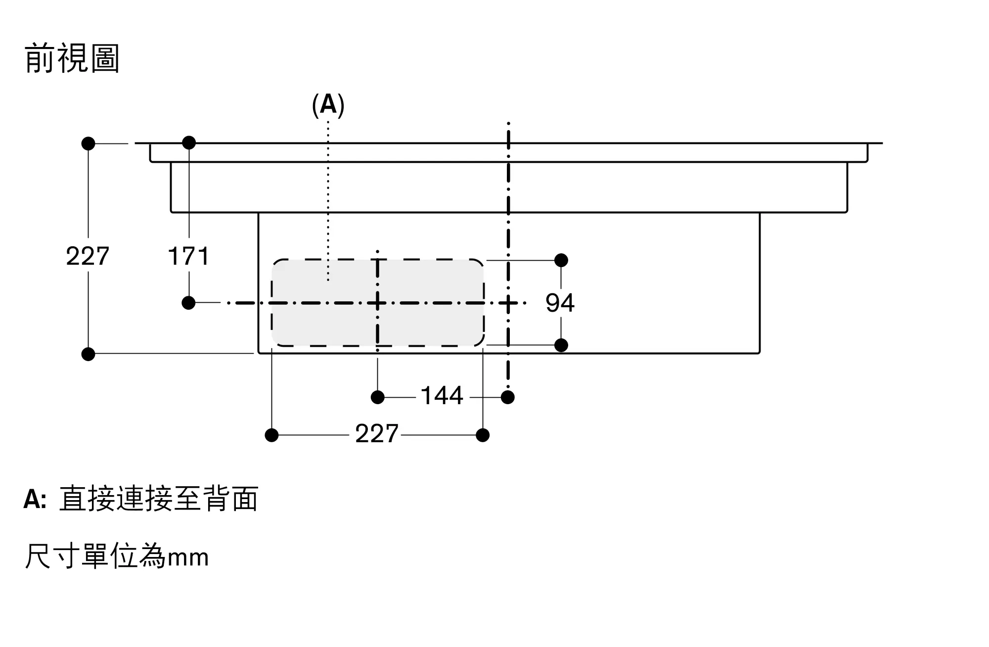 下嵌深度視安裝情況227 mm.