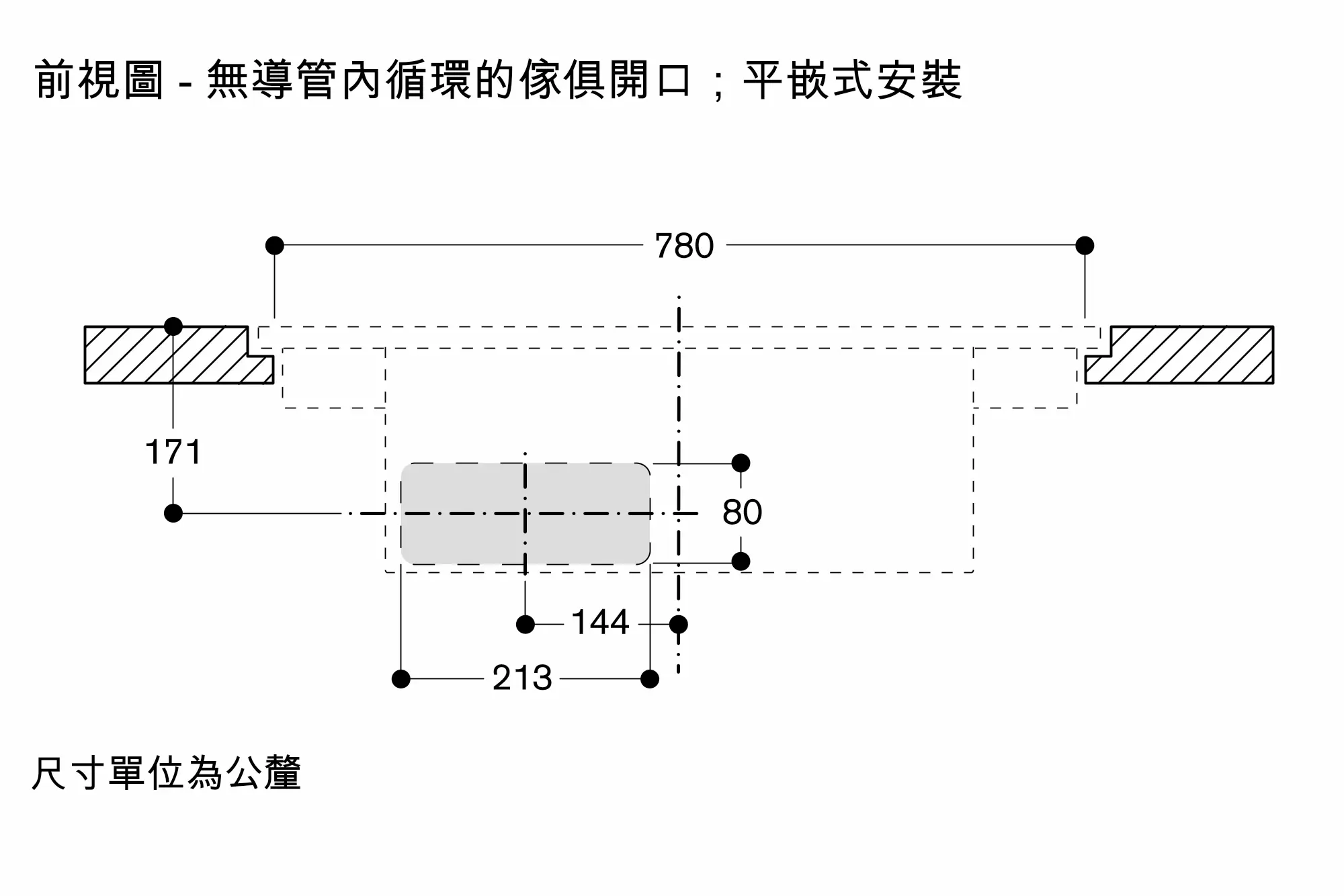 內循環式安裝,建議至少預留 440 cm²的通風截面,使內循環達到最佳效果