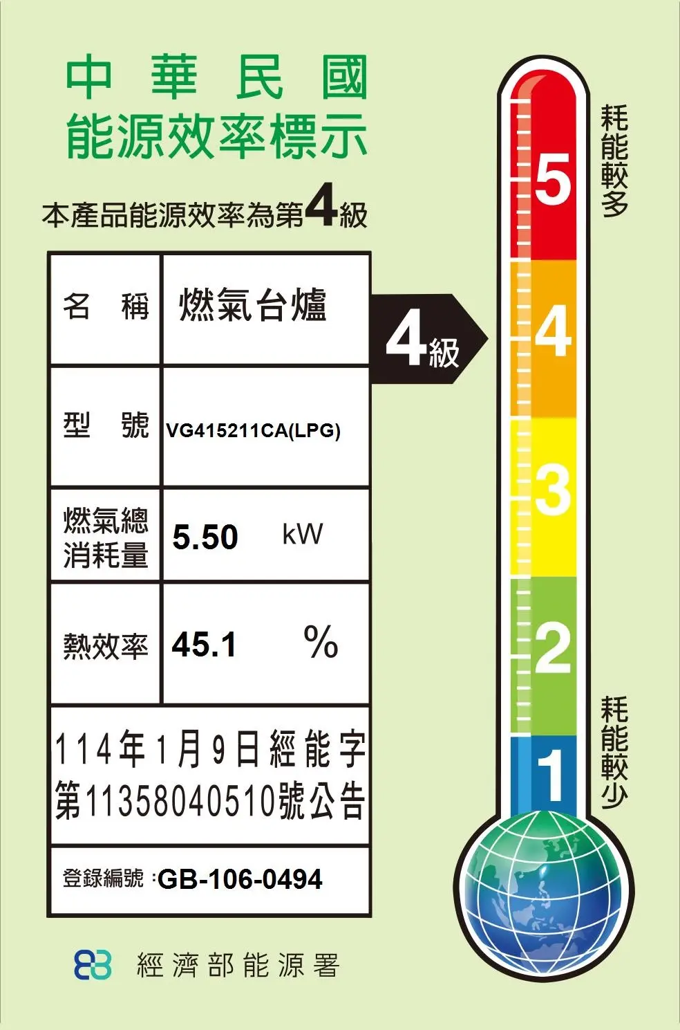 單口三環爐火力功率(300-5000 瓦),適用於直徑 32 公分以下爐具