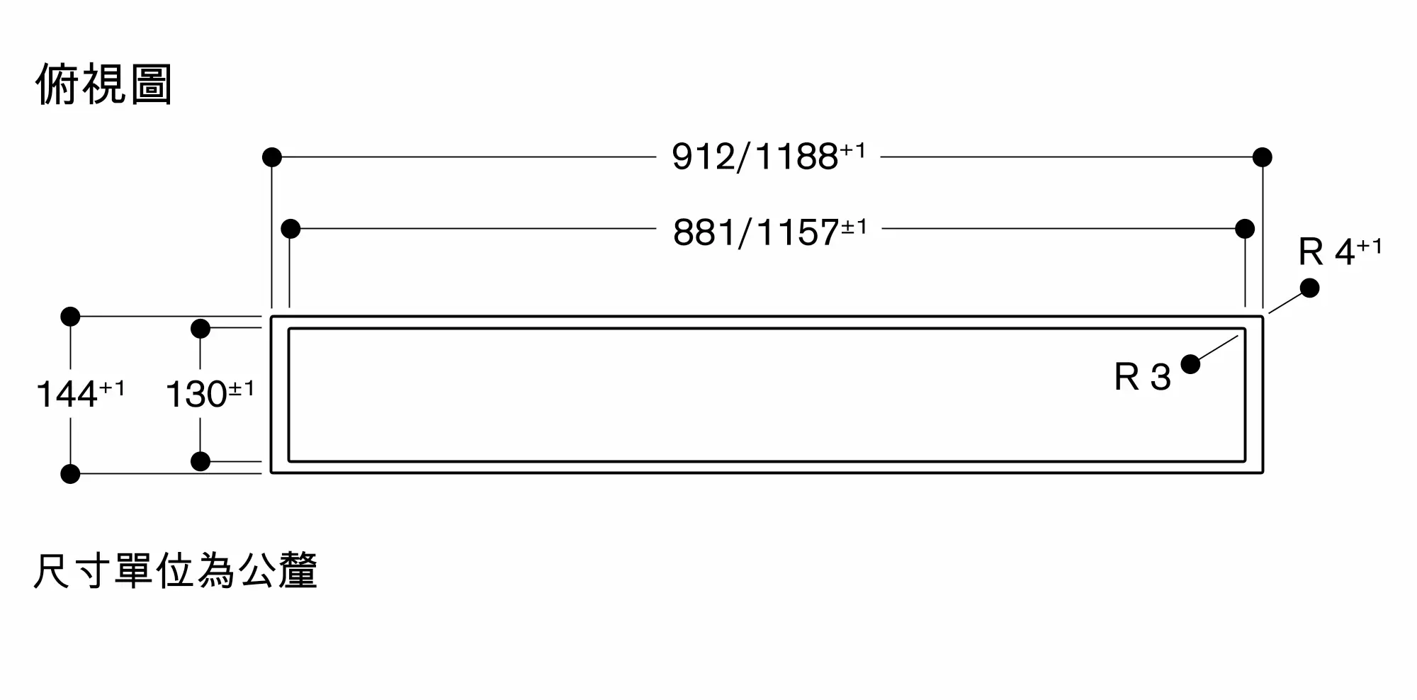 為加強超薄檯面的載重及穩固性,需特別針對櫥櫃結構做補強規劃櫥櫃及檯面時,請將機器的重量列入考量